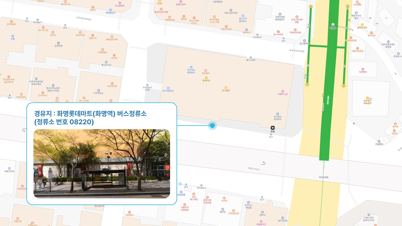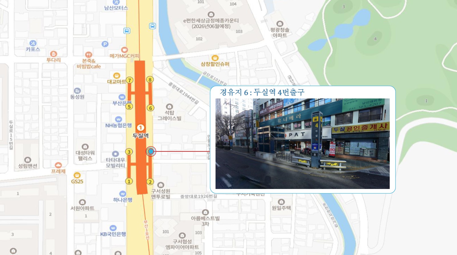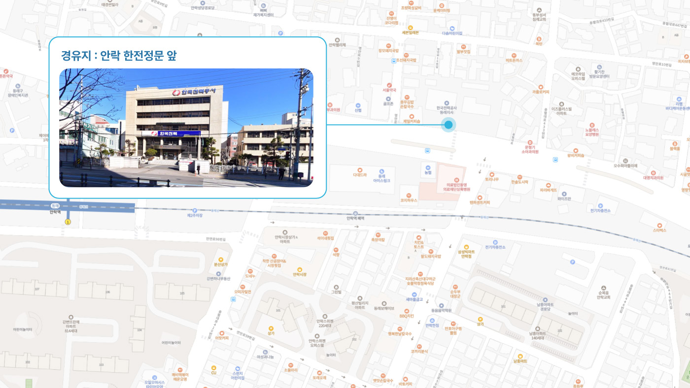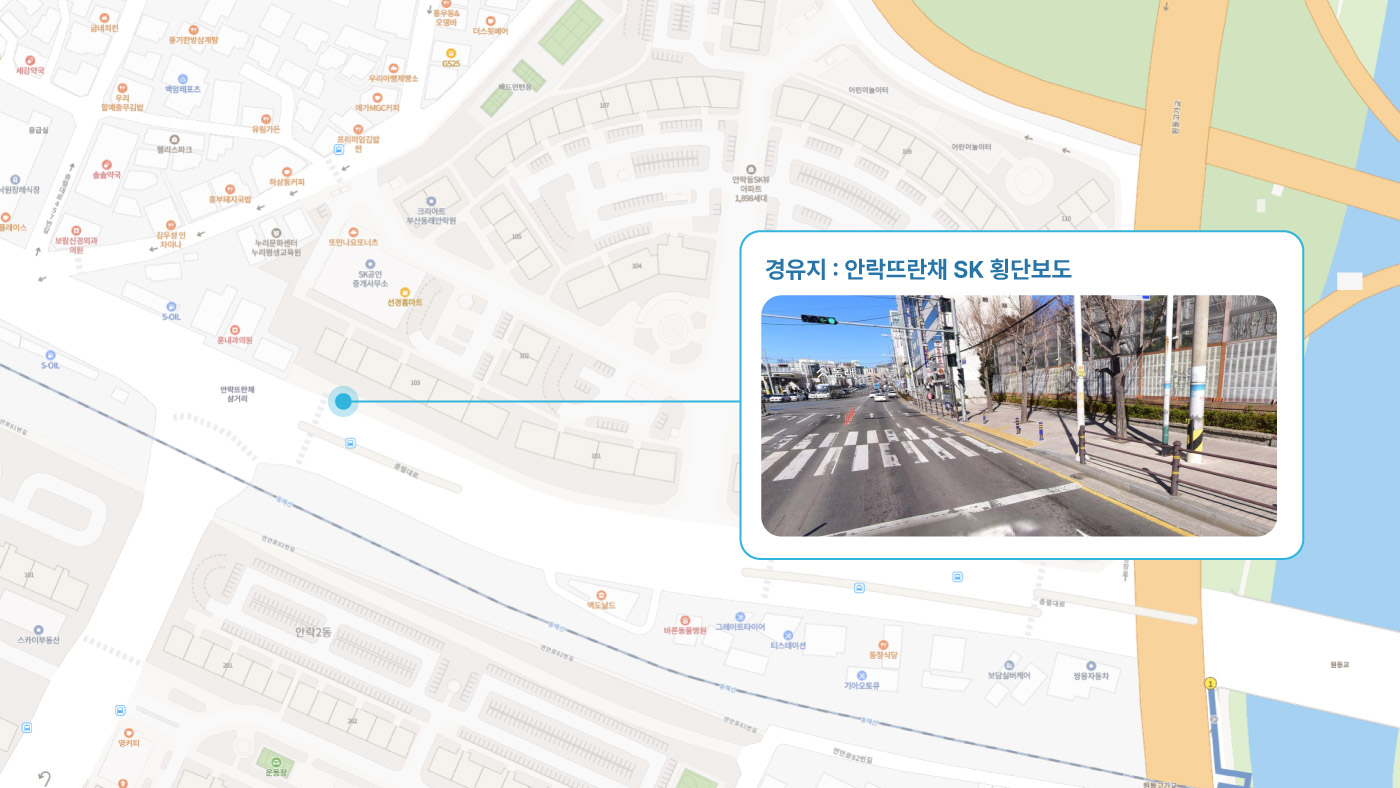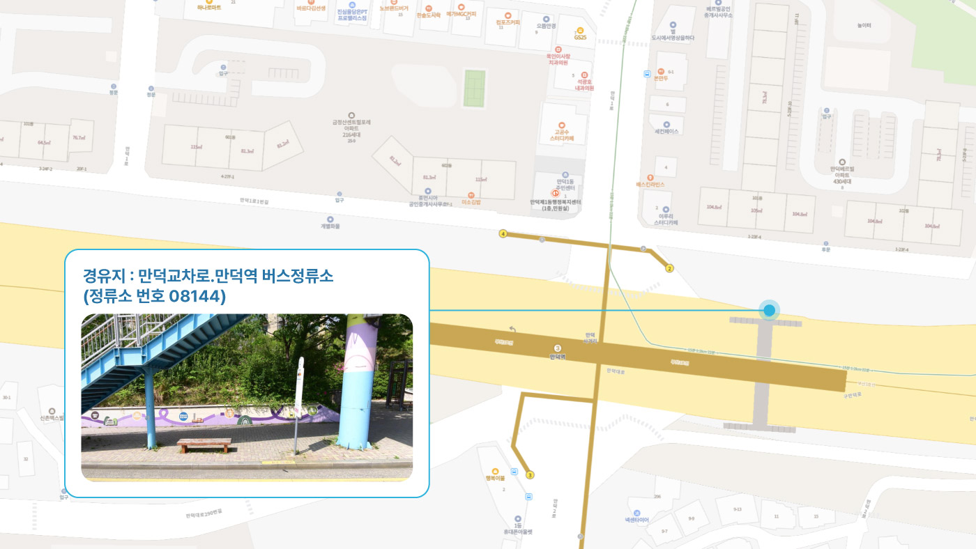 원동IC교차로 ↔ 안락뜨란채 SK ↔ 한국전력공사 동래지사 ↔ 낙민역 3번출구 ↔ 동래시장 버스정류소 건널목 ↔ 메가마트 동래점 ↔ 미남교차로.미남역 ↔ 만덕교차로.만덕역 ↔ 남산정역(부산폴리텍대학) 4번출구 ↔ 덕천 부민병원 ↔ 화명 동원아파트 육교 ↔ 화명롯데마트(화명역) ↔ 김해4 Cluster Hub