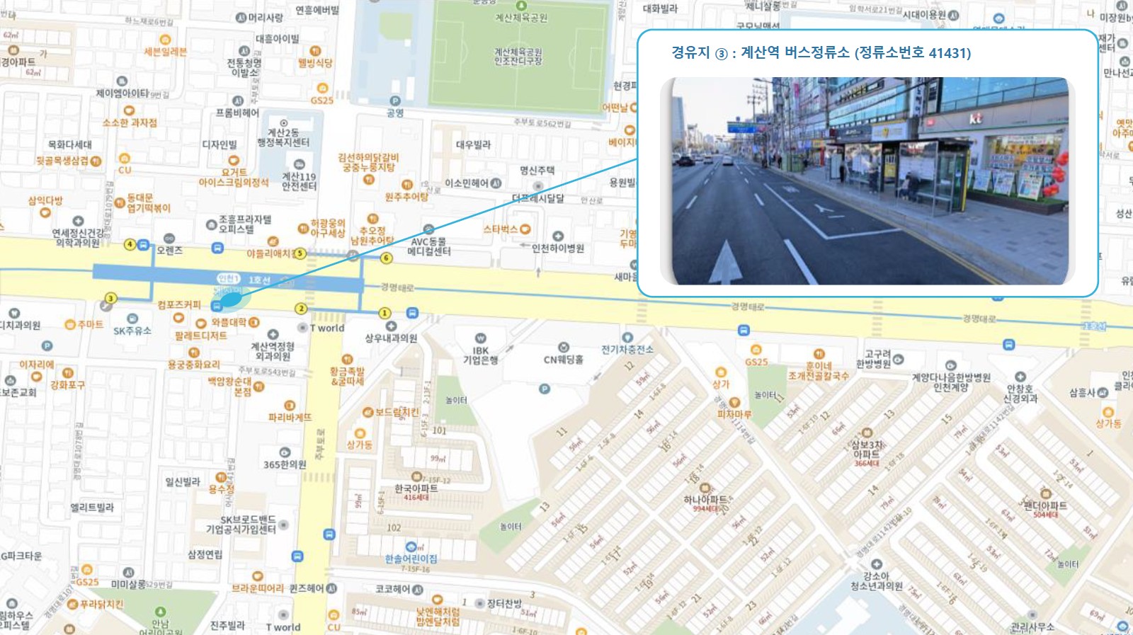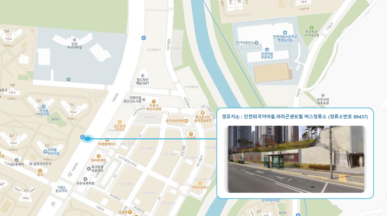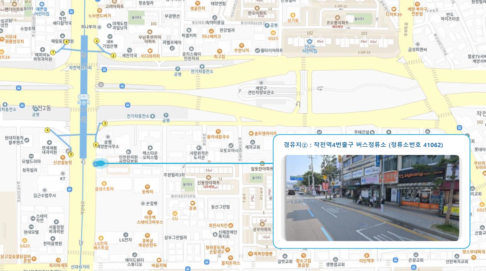부평역사박물관 ↔ 갈산역 ↔ 작전역 ↔ 계산역 ↔ 임학역 ↔ 박촌역 ↔ 귤현역 ↔ 아라동 행정복지센터 ↔ 인천외국어마을.파라곤센트럴 ↔ 동인천2 Sub-hub