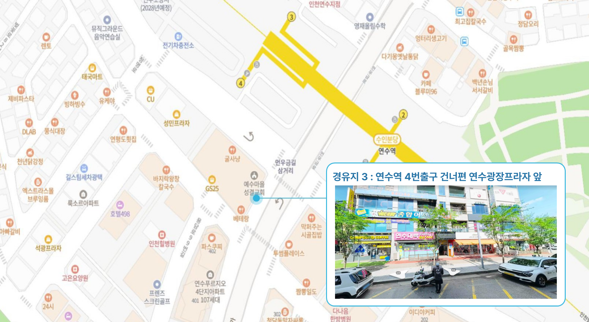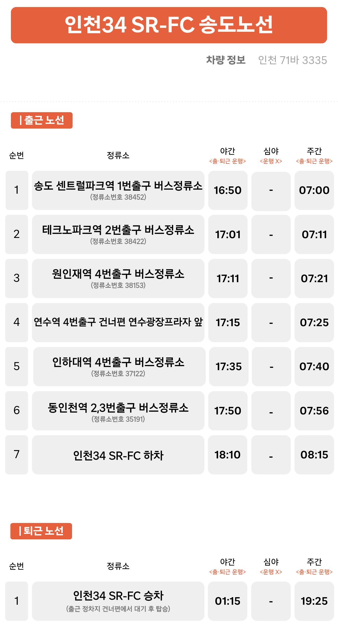 송도센트럴파크역 ↔ 테크노파크역 ↔ 원인재역 ↔ 연수역 ↔ 인하대역 ↔ 동인천역 ↔ 인천34 SR-FC