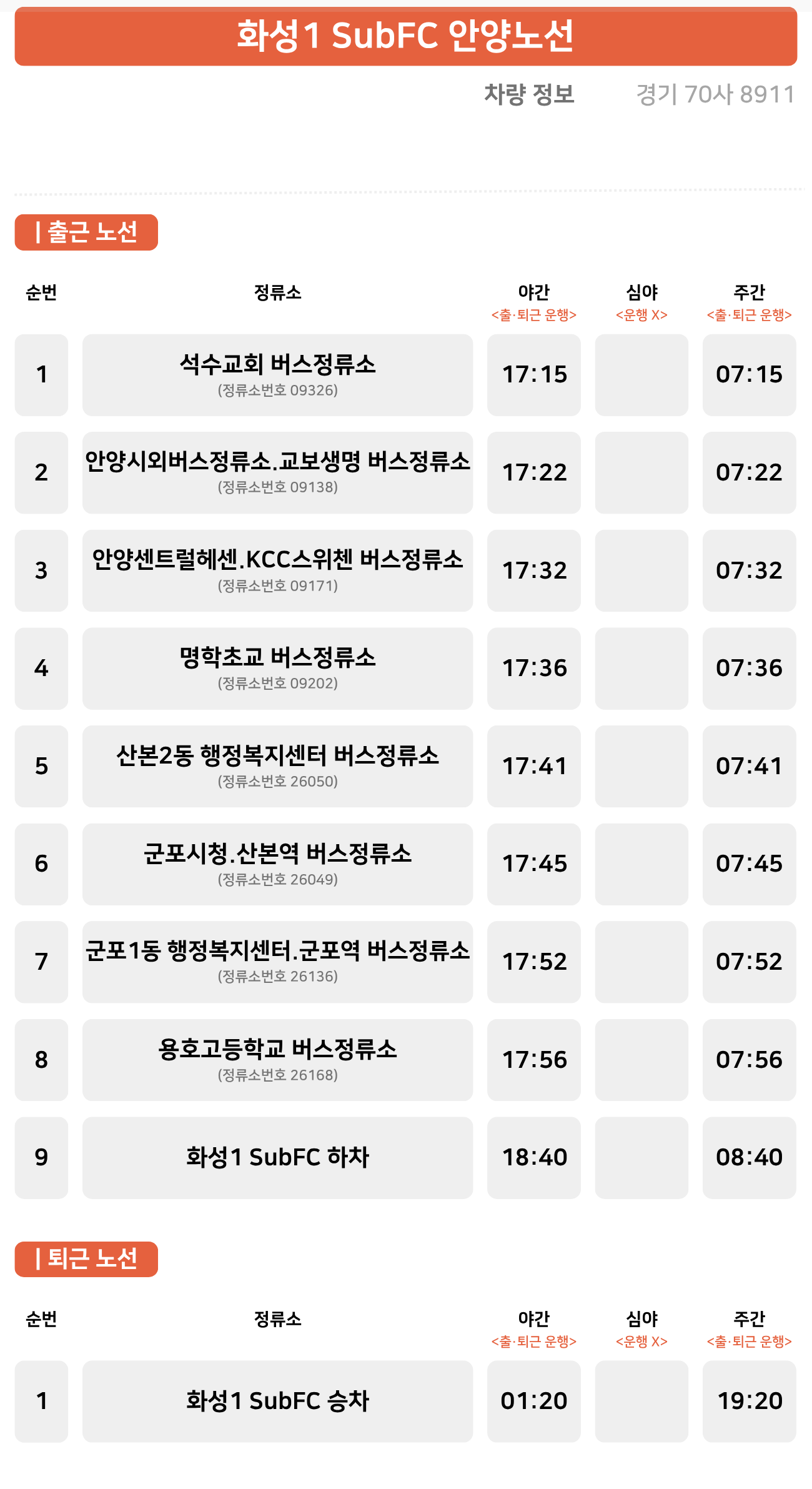 셔틀 버스 안양 노선