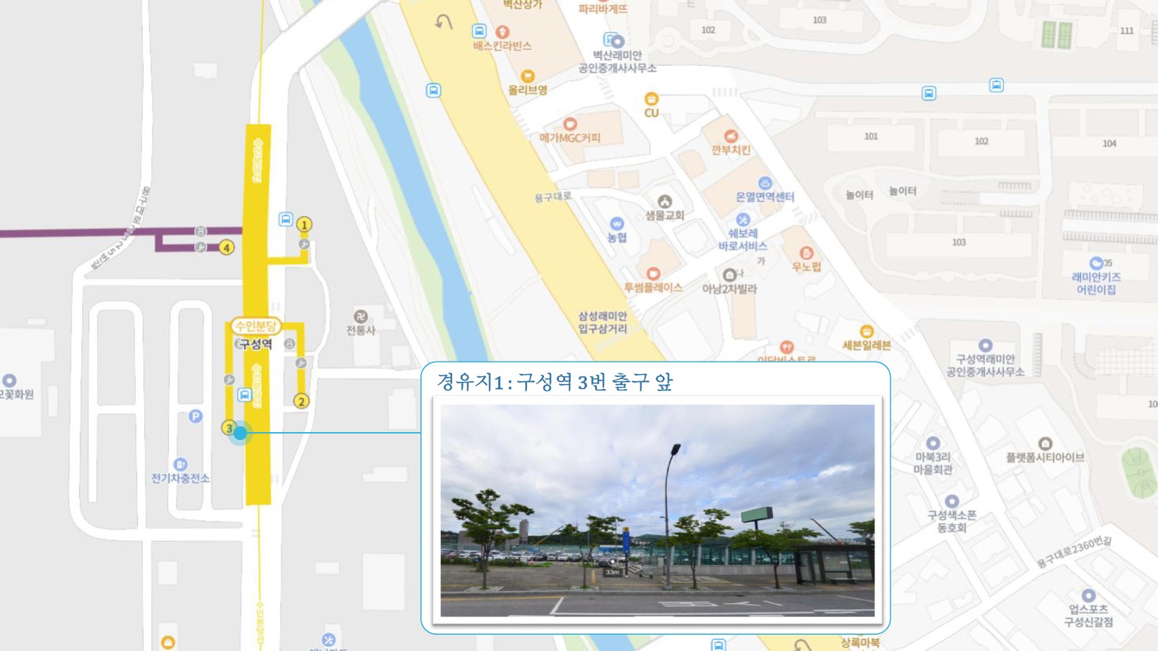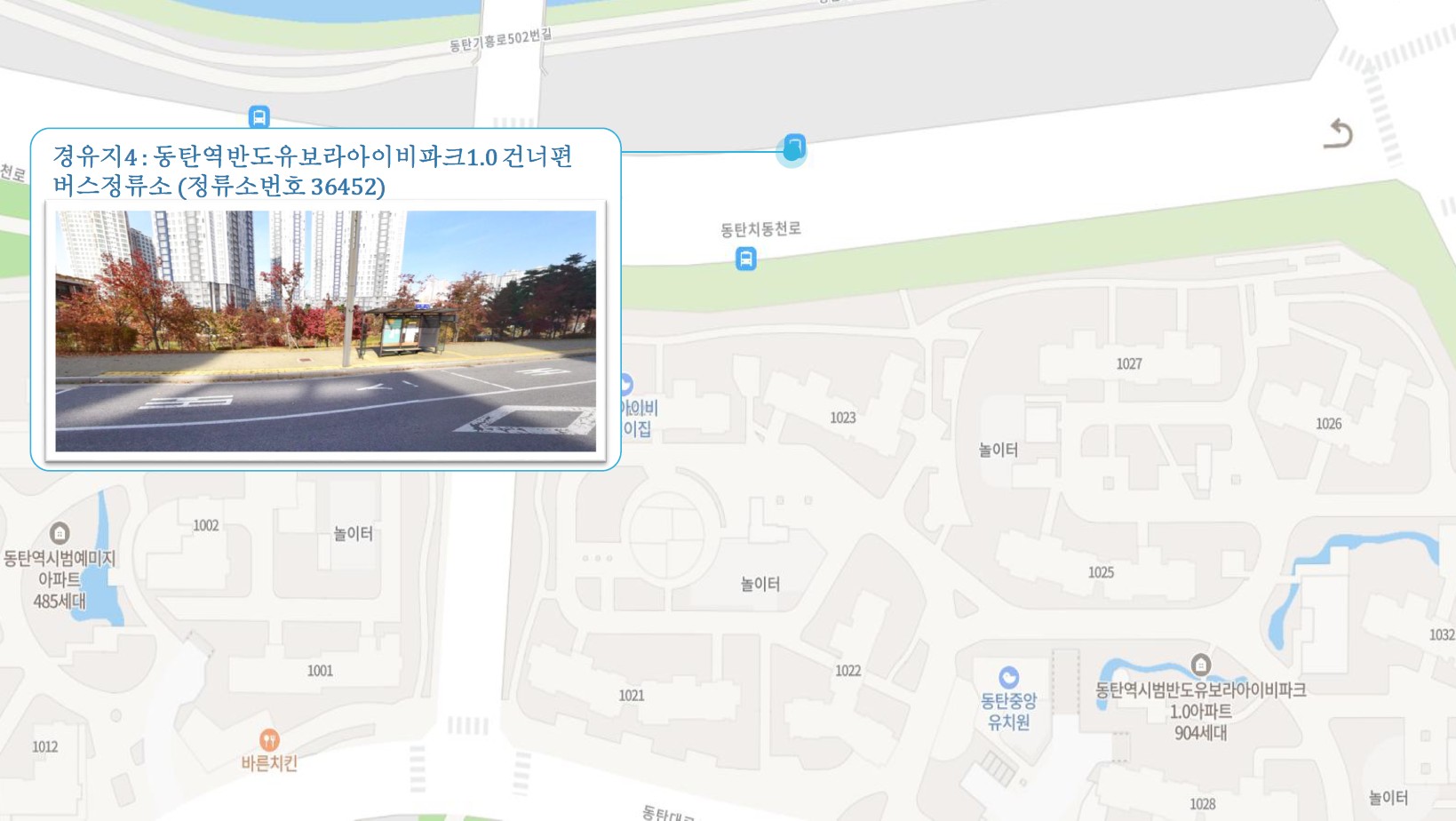 보정역 ↔ 구성역 ↔ 기흥역 ↔ 경기도박물관 정문 ↔ 동탄역 반도유보라아이비파크 ↔ 동탄역 롯데캐슬 ↔ 동탄 린스트라우스더레이크아파트 ↔ 아이원,호수자이파밀리에 ↔ 동탄1 캠프