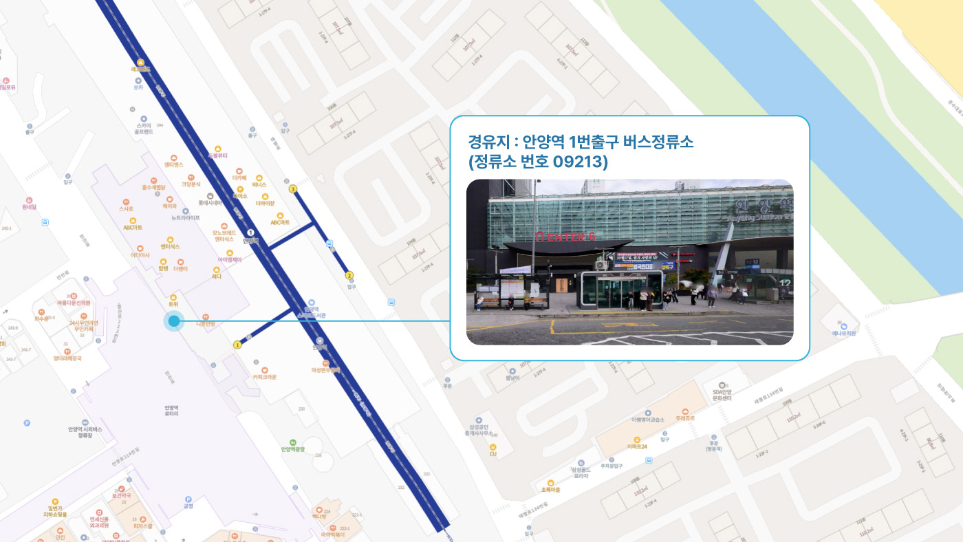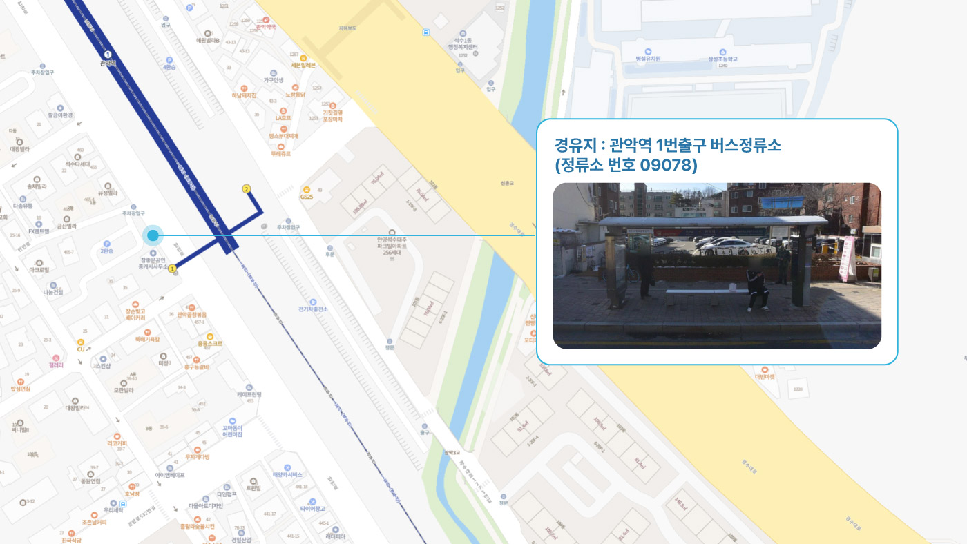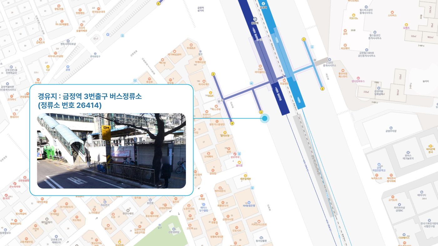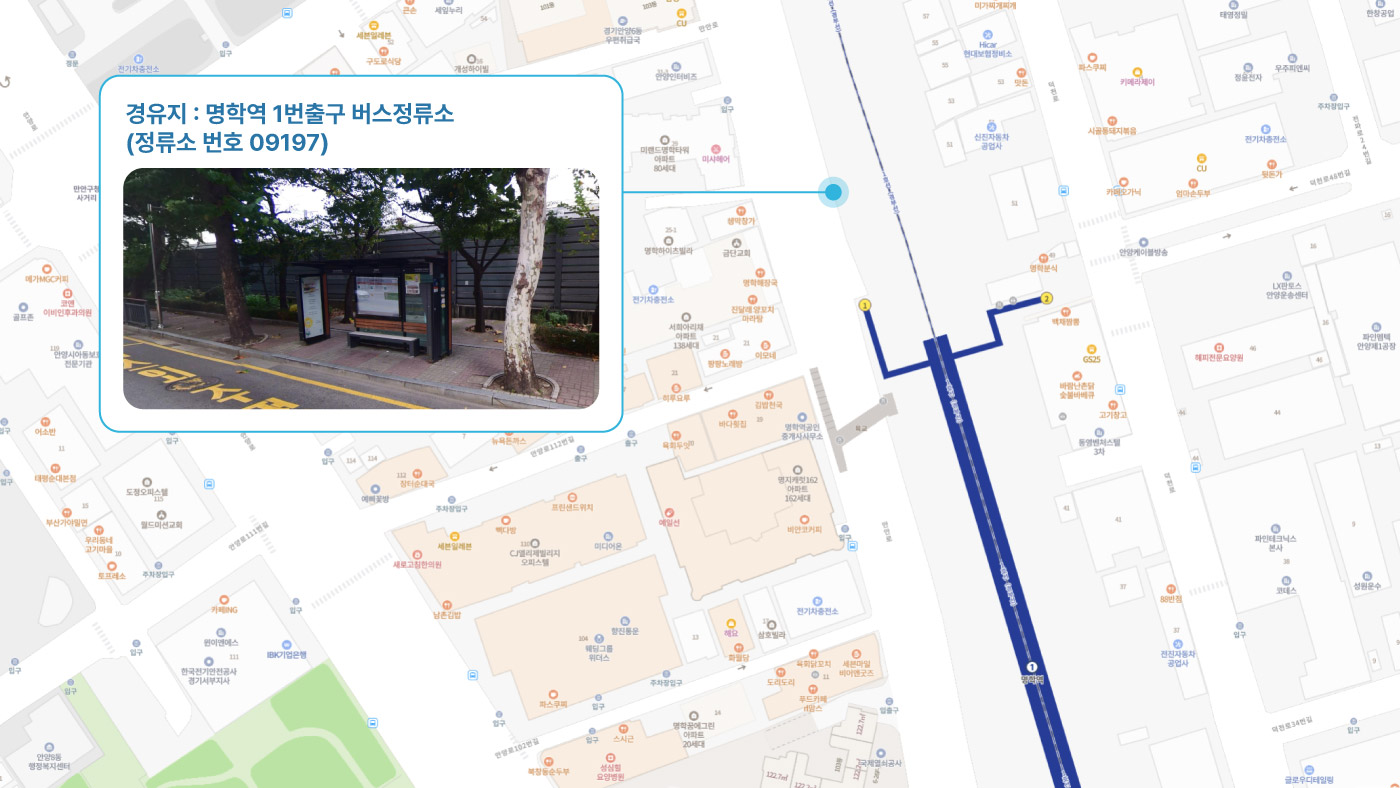 군포중학교 ↔ 금정역 3번출구 ↔ 명학역 1번출구 ↔ 안양역 1번출구 ↔ 관악역 1번출구 ↔ 비산힐스테이트 ↔ 범계역, 힐스테이트 ↔ 법원검찰청, 평촌역 ↔ 안양1 캠프