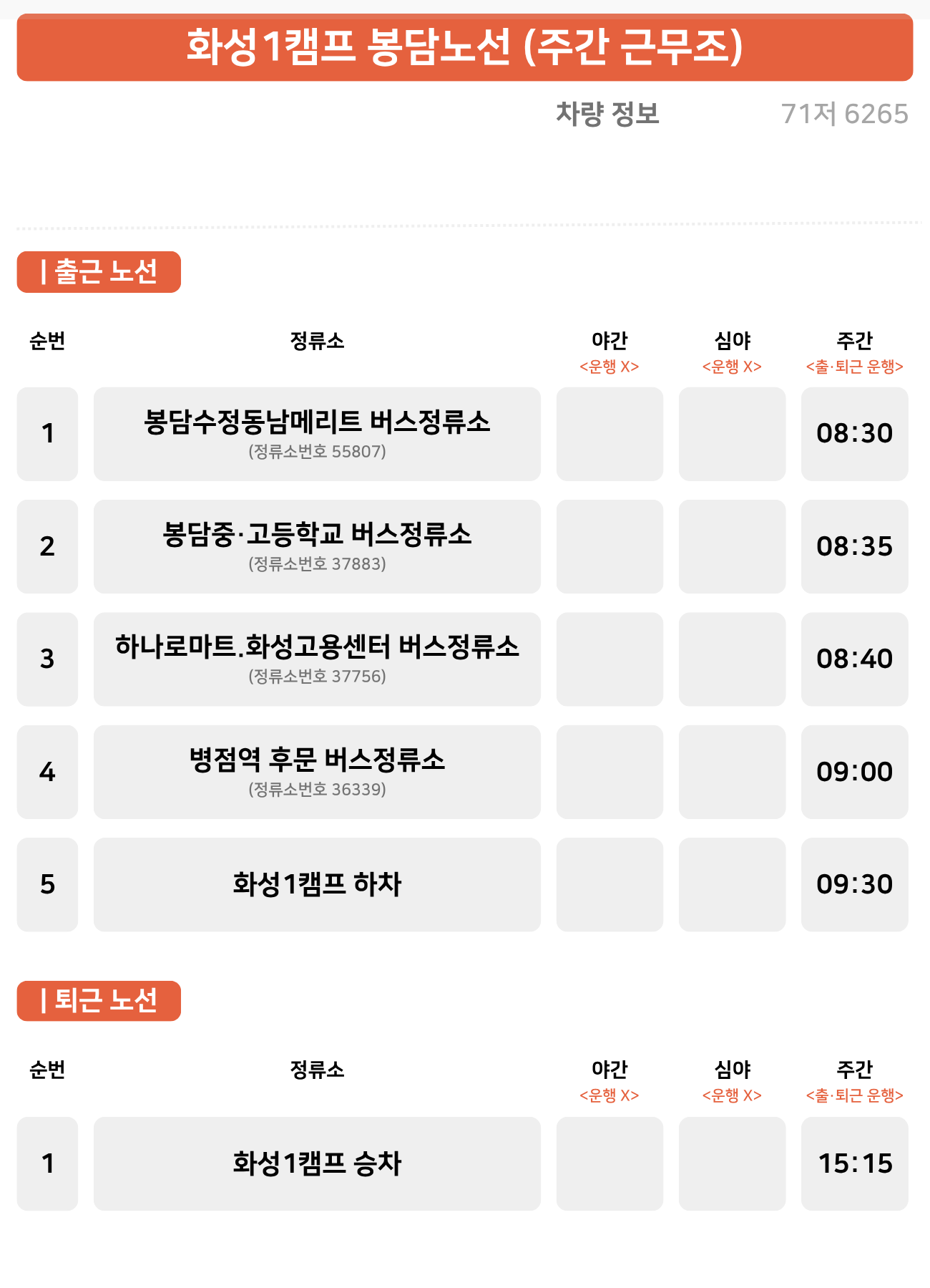 봉담 노선 (주간 근무조)