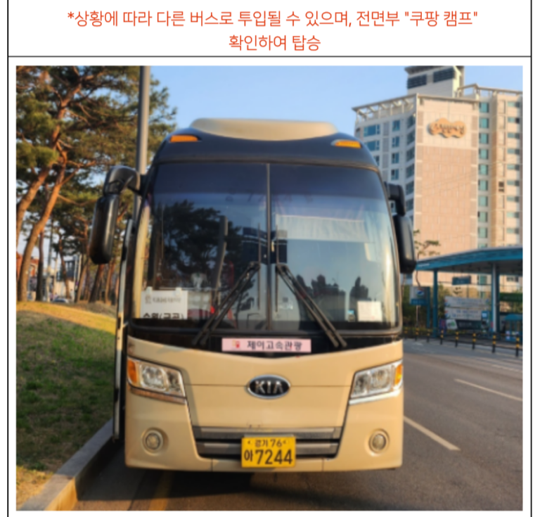 전면부 "쿠팡 캠프" 확인하여 탑승