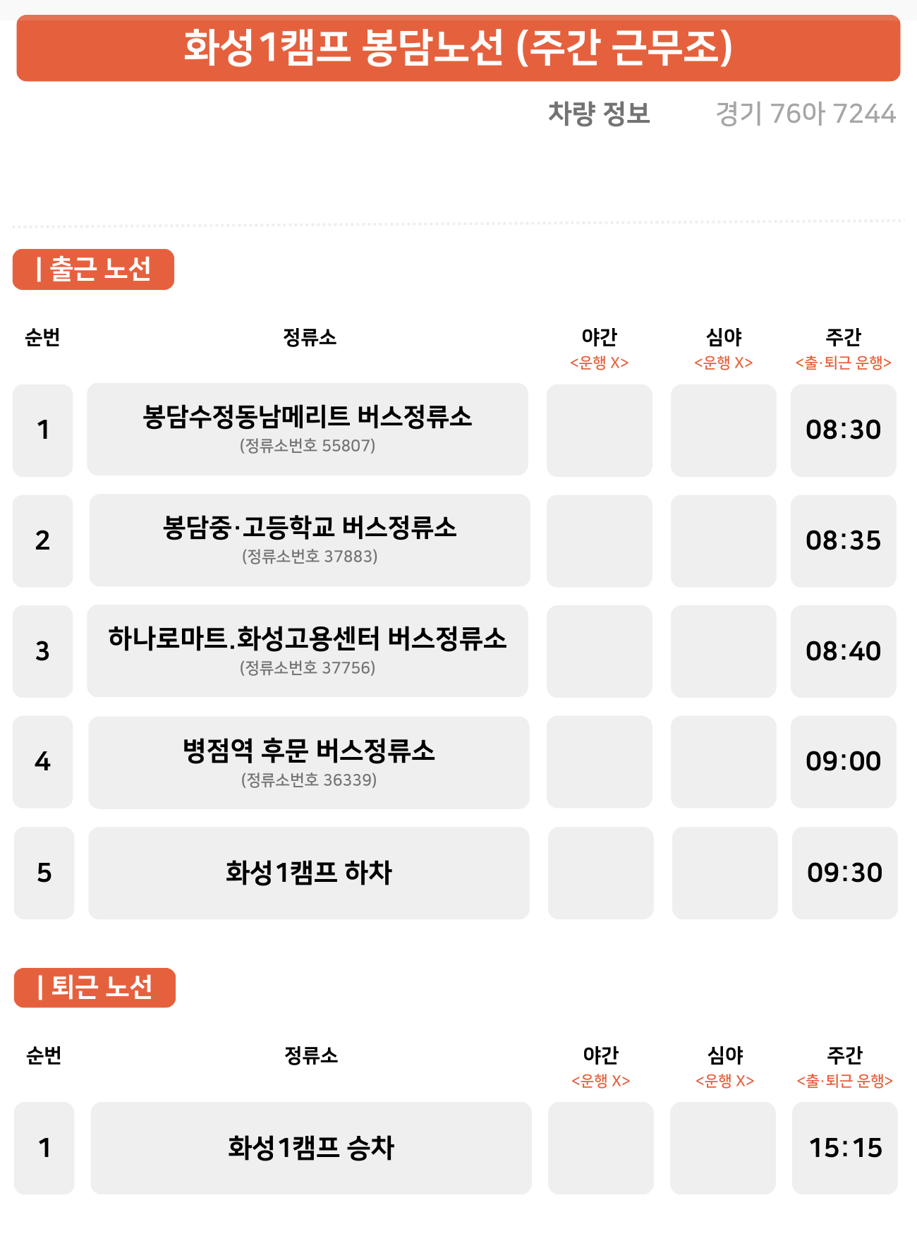 봉담 노선 (주간 근무조)