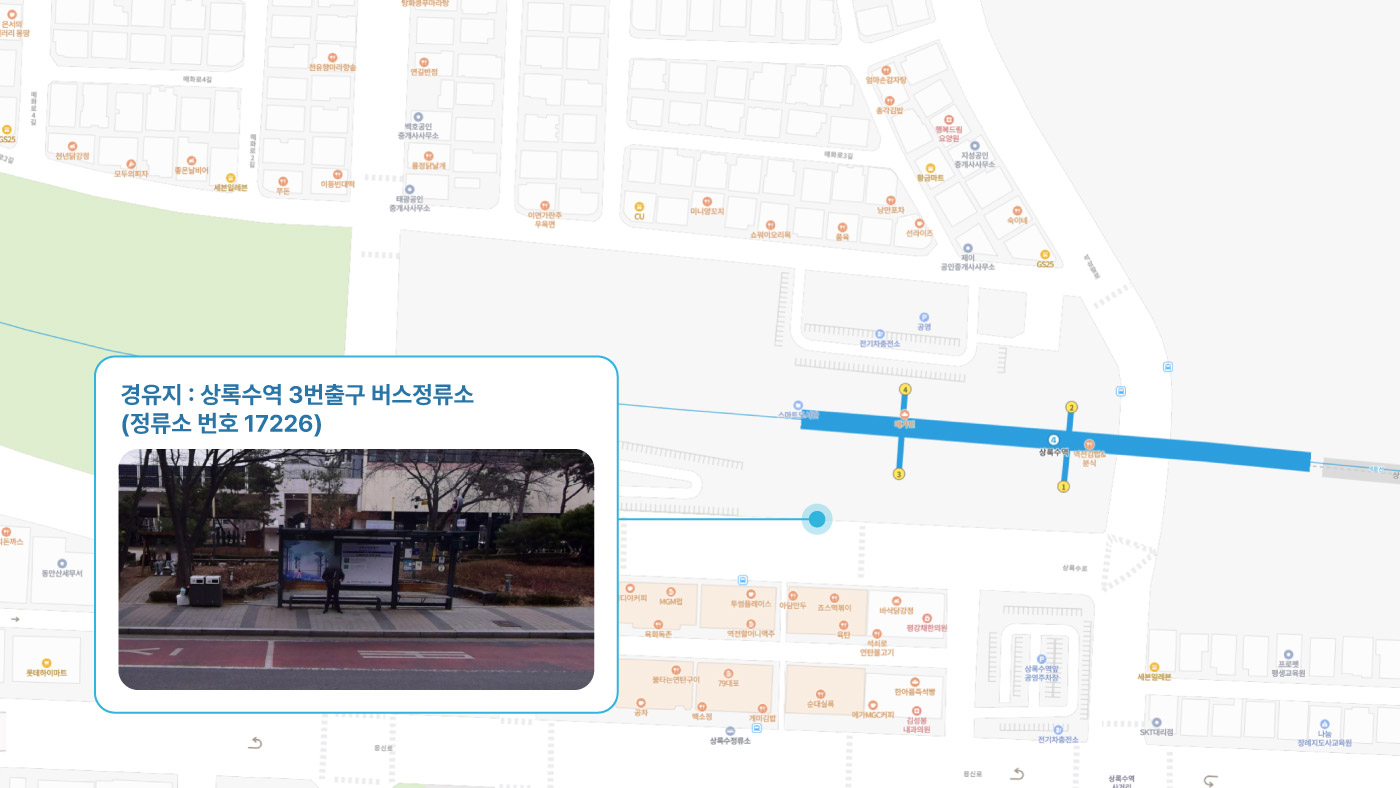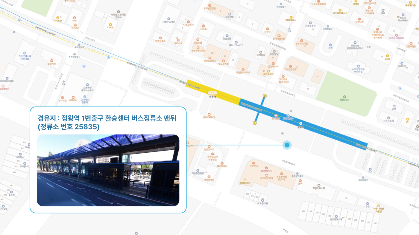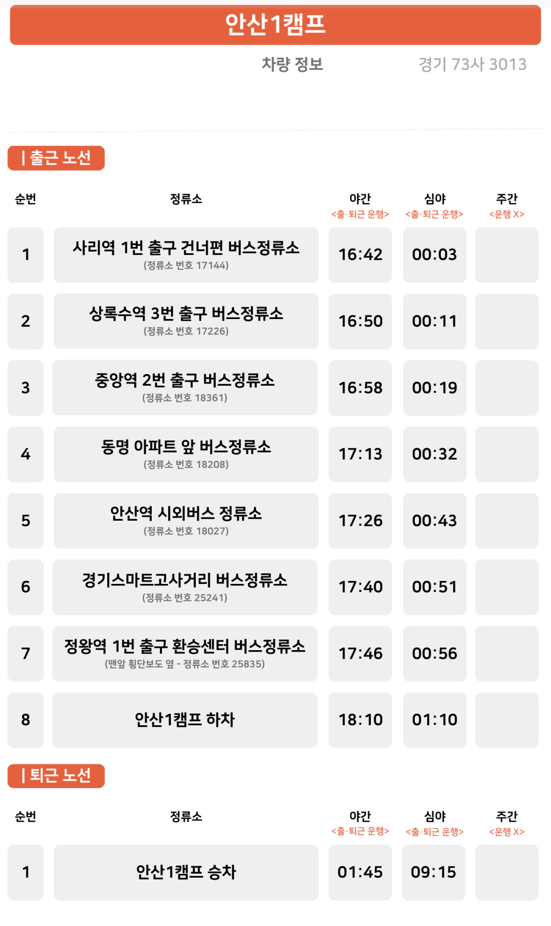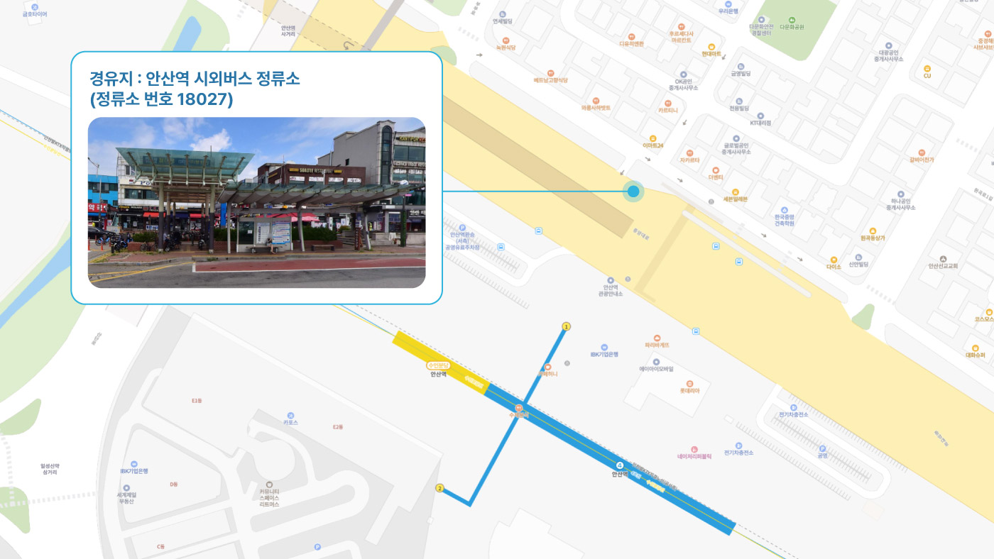 사리역 ↔ 상록수역 ↔ 중앙역 ↔ 안산역 ↔ 경기스마트고사거리 ↔ 정왕역 ↔ 쿠팡 안산1 캠프