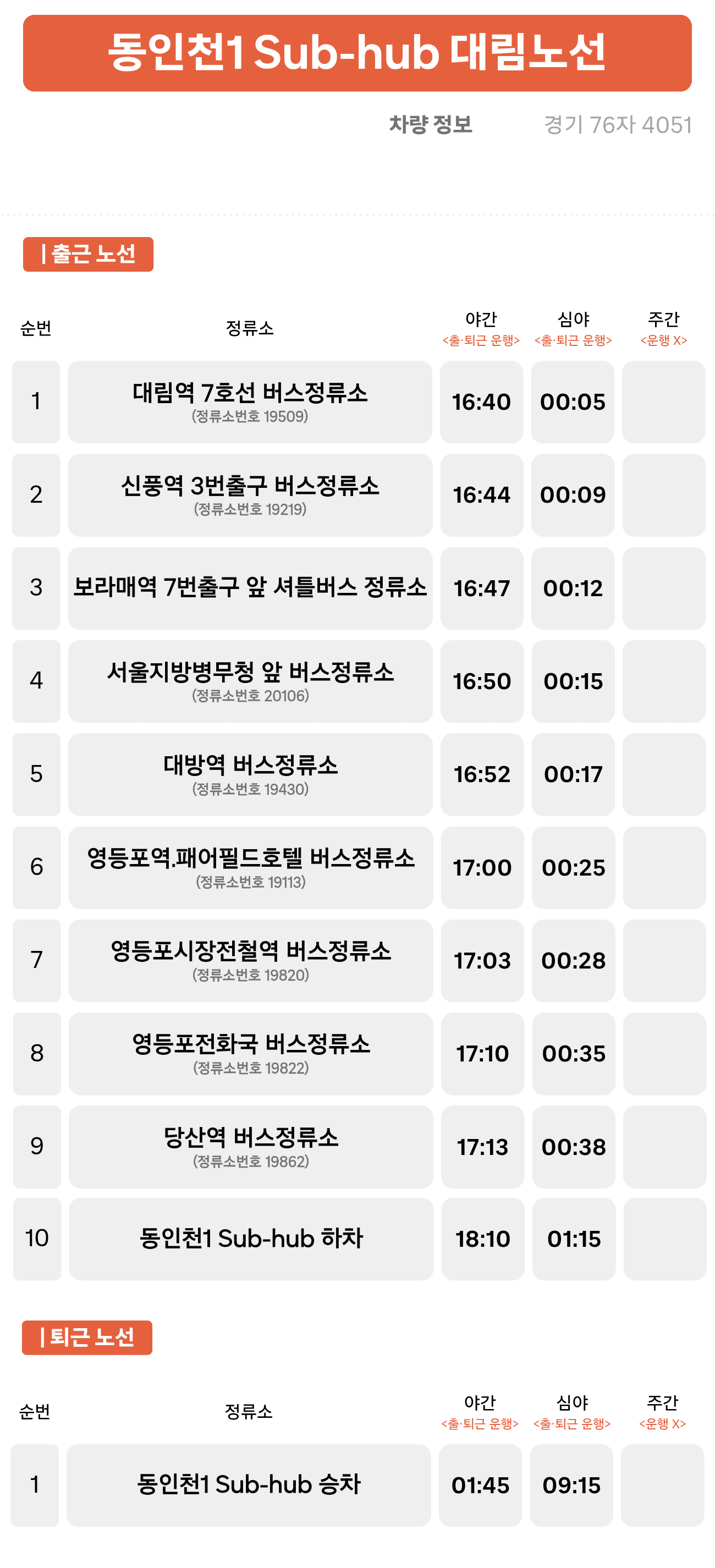 셔틀 버스 대림 노선