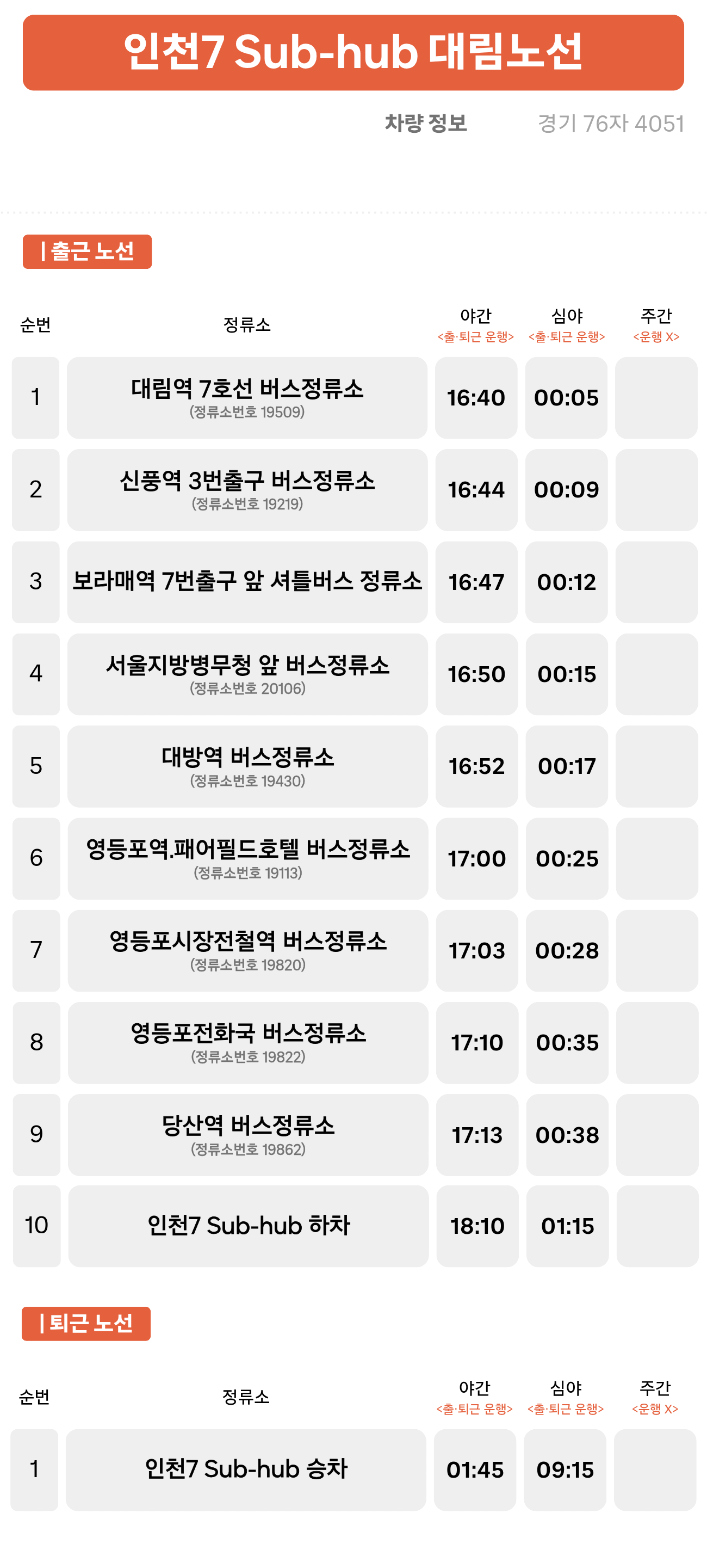 셔틀 버스 대림 노선
