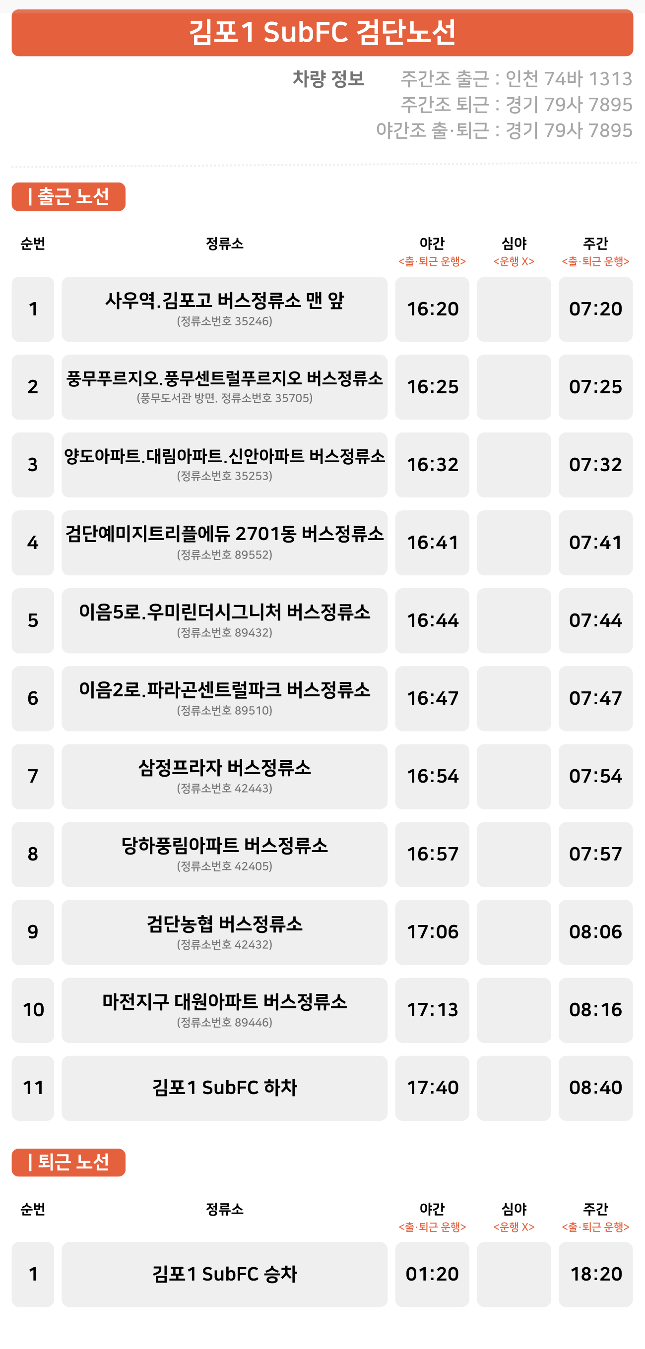 사우역.김포고 ↔ 풍무푸르지오.풍무센트럴푸르지오 ↔ 양도아파트.대림아파트.신안아파트 ↔검단예미지트리플에듀 2701동 ↔ 이음5로.우미린더시그니처 ↔ 이음2로.파라곤센트럴파크 ↔ 삼정프라자 ↔ 당하풍림아파트 ↔ 검단농협 ↔ 마전지구 대원아파트 ↔ 쿠팡 김포1 SubFC