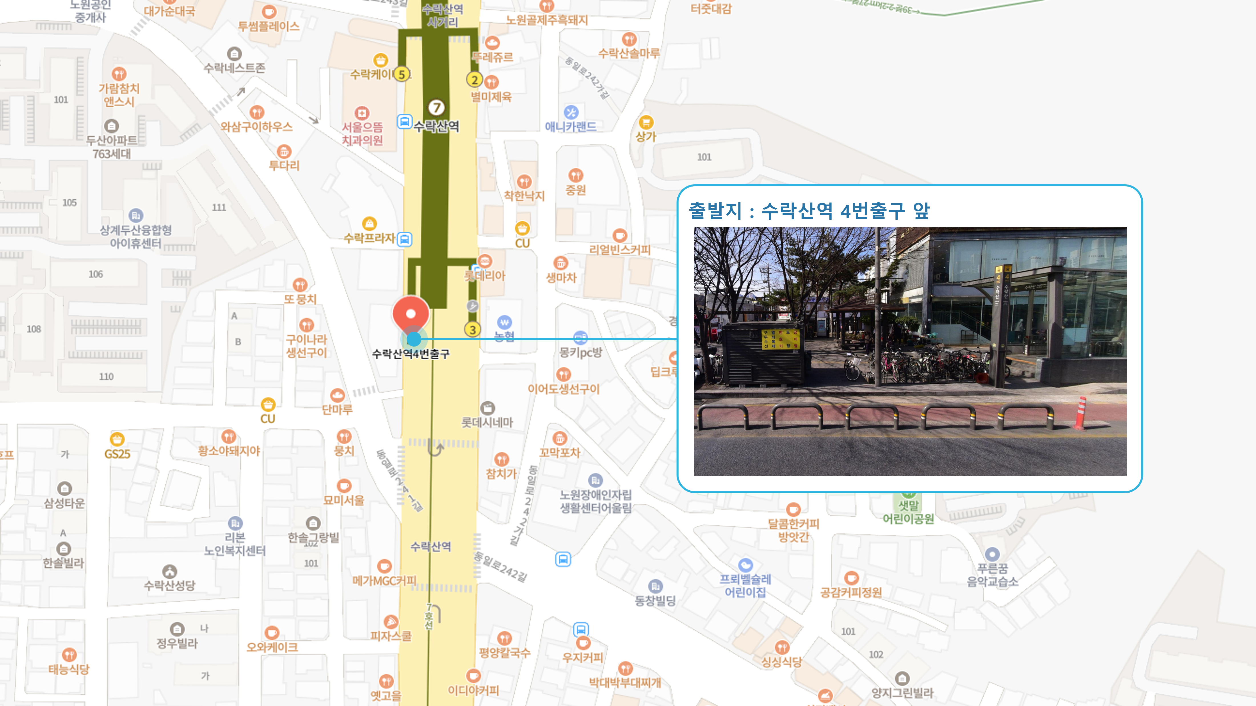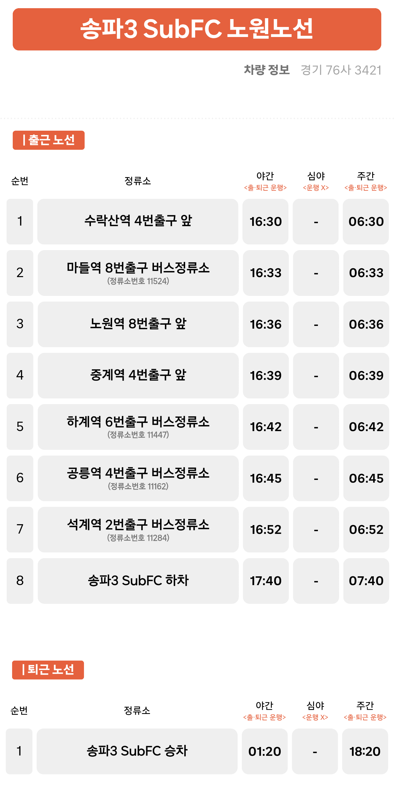 수락산역 ↔ 마들역 ↔ 노원역 ↔ 중계역 ↔ 하계역 ↔ 공릉역 ↔ 석계역 ↔ 송파3 Sub FC